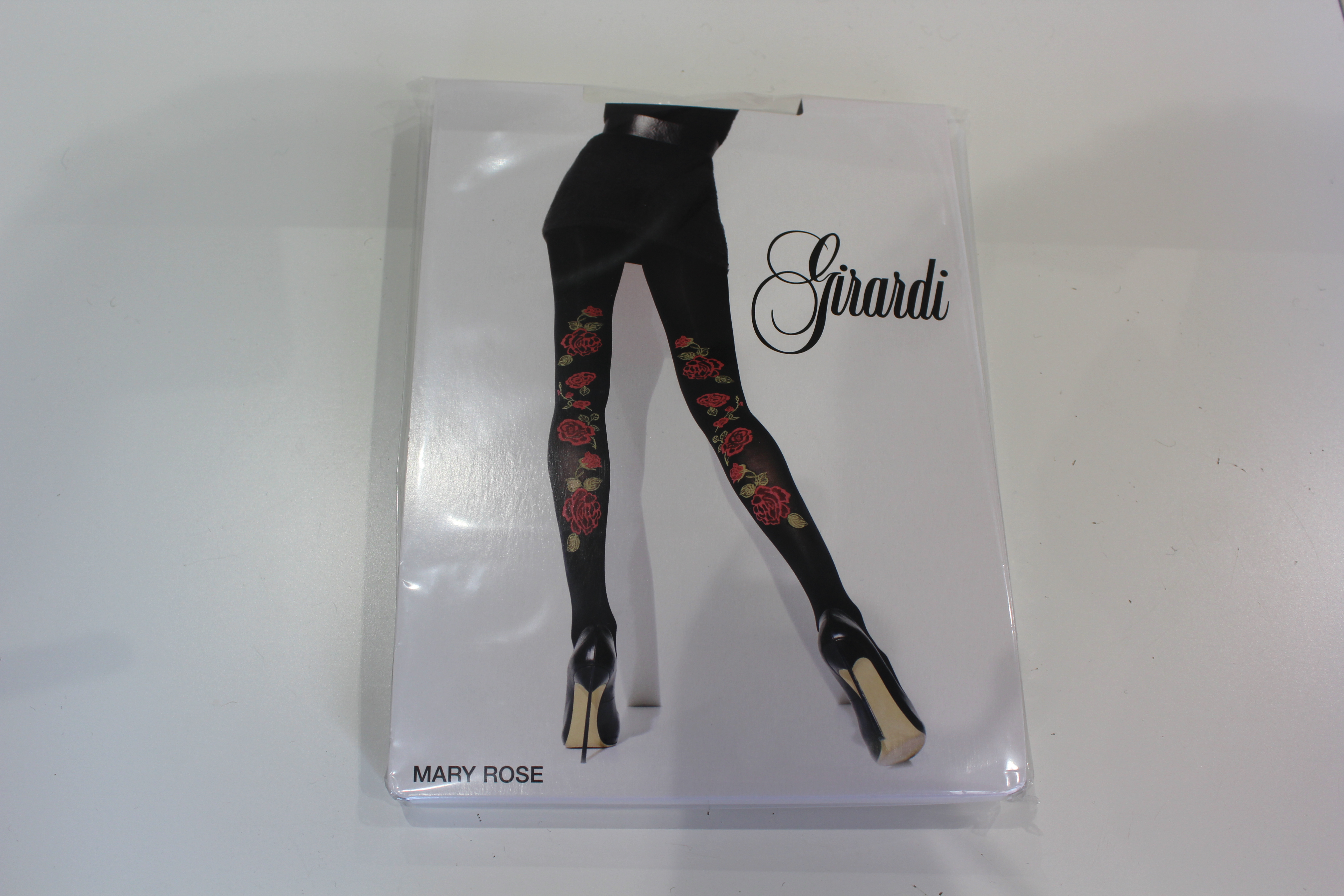 Collante con decoro rose rosse lato posteriore della gamba,50 den micro fibra effetto velato.
